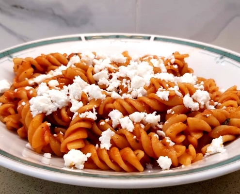 פסטה ברוטב עגבניות עם נענע וגבינה מלוחה